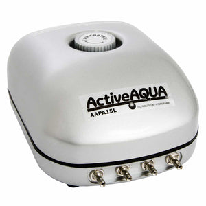 Active Aqua Air Pumps for hydroponics are ideal for oxygenating reservoirs of all sizes. Oxygenation of hydroponic reservoirs using air pumps is vital for the health of plants and their root systems. Active Aqua Air Pumps introduce dissolved oxygen to the nutrient solution, keeping it well-aerated for each irrigation cycle.