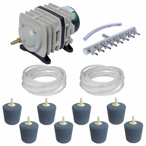 The aerator must also have access to fresh air since that same air will be distributed into the water. Cut silicone airline tubing to the desired length. Connect each section of tubing to the distribution manifold and each air stone. Place air stones toward the bottom of the tank or reservoir.