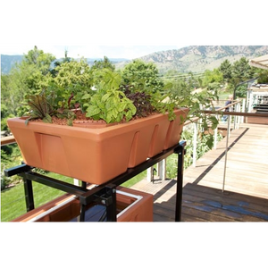 The AquaUrban is one of our simplest, space-effective aquaponic systems without sacrificing quality. It is the smallest system we sell that still allows for the production of edible fish! This complete package comes with everything you need to get your own small-scale Aquaponic System running in your own home.  Featuring a 2′ x 3.5′ growing space full of expanded clay media, perfect for growing greens, herbs, and fruiting crops; as well as a 60-gallon fish tank below to grow edible or decorative fish species. The AquaUrban is an ebb and flow system which uses an analog single-outlet timer to provide water cycles of 15 minutes on and 45 minutes off.