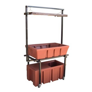 • Handles and optional castors on the grow bed stand, and handles on the fish tank and grow bed for easy for lifting and transporting.