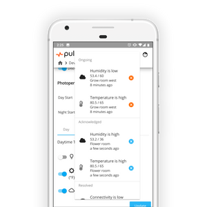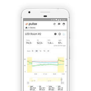 Historical Data – The real value of Pulse One comes from accessing historical data. Looking back on weeks of data about your grow room to discover where things went wrong or where you can make improvements in your growing process can be invaluable.
