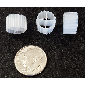Successful biofiltration using moving bed technology requires the use of the right media. Sweetwater SWX Bio-Media is the ideal choice at a great price. These biofilm carrier elements are made from 100% virgin high-density polyethylene. With a surface area of 274 ft2/ft3 this proven geometric design provides an abundant amount of surface area for bacteria to colonize. Robust bacteria colonization is essential to the nitrification process of converting ammonia to nitrite and ultimately nitrate. Sweetwater SWX Bio-Media’s positively buoyant characteristic allows for continuous movement in a bio-filtration tank with the use of an air pump or blower. The constant circulating action exfoliates the older, less active bacterial layer; which eliminates the need for back washing and allows the bio media to be self-cleaning.